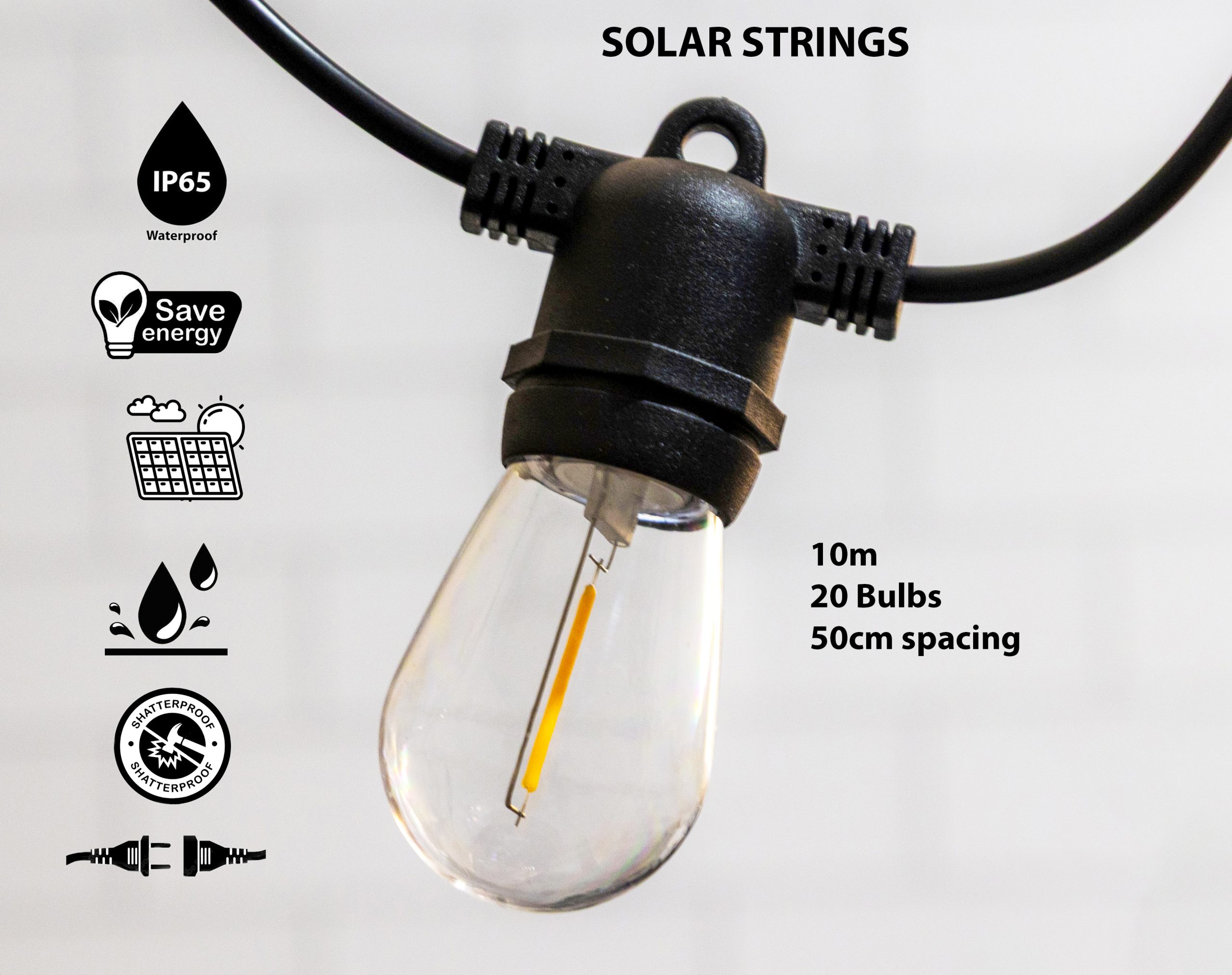 NO electricity needed ! These Solar String Lights switches automatically on when it gets dark. No worries, when there is sunlight there will be light at night